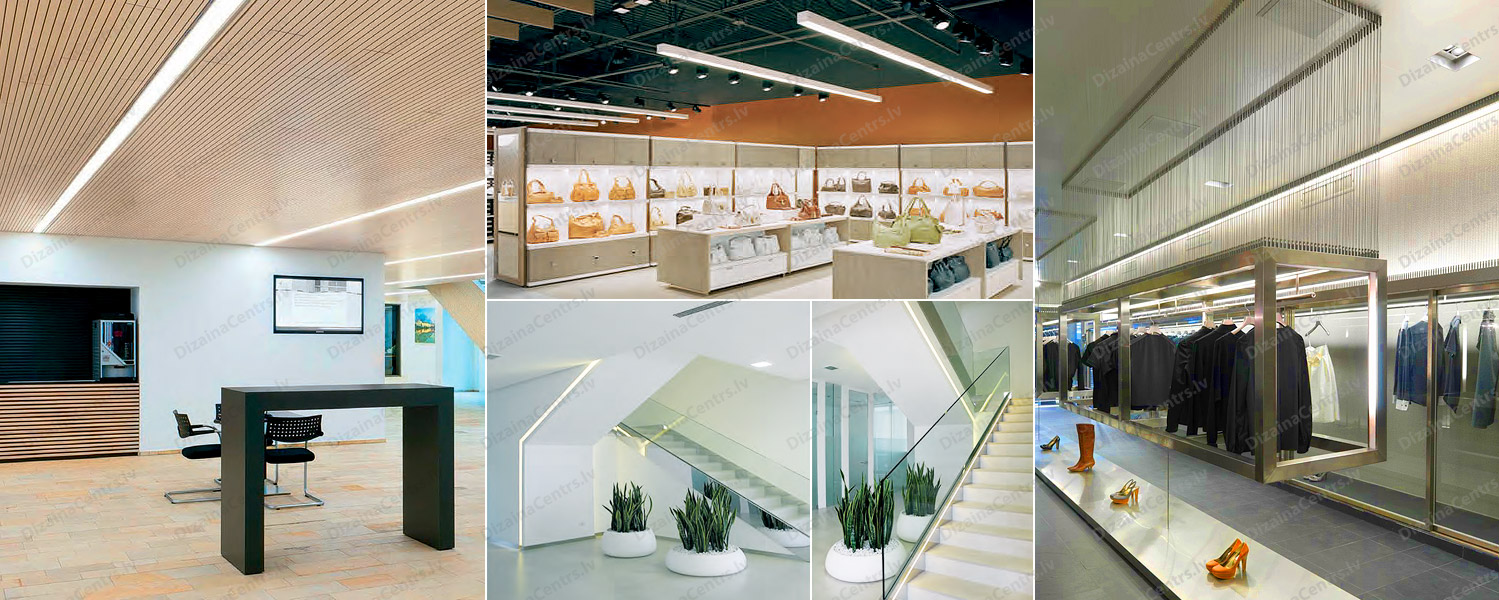 LED gaismas ķermeņi birojiem un kabinietiem, veikaliem un tirdzniecībai, izstāžu un konferenču zālēm, lidostām, bankām, sabiedriskām telpām. LED līnijas, iekaramie un iebūvējamie profili LINEA LED Maxi.